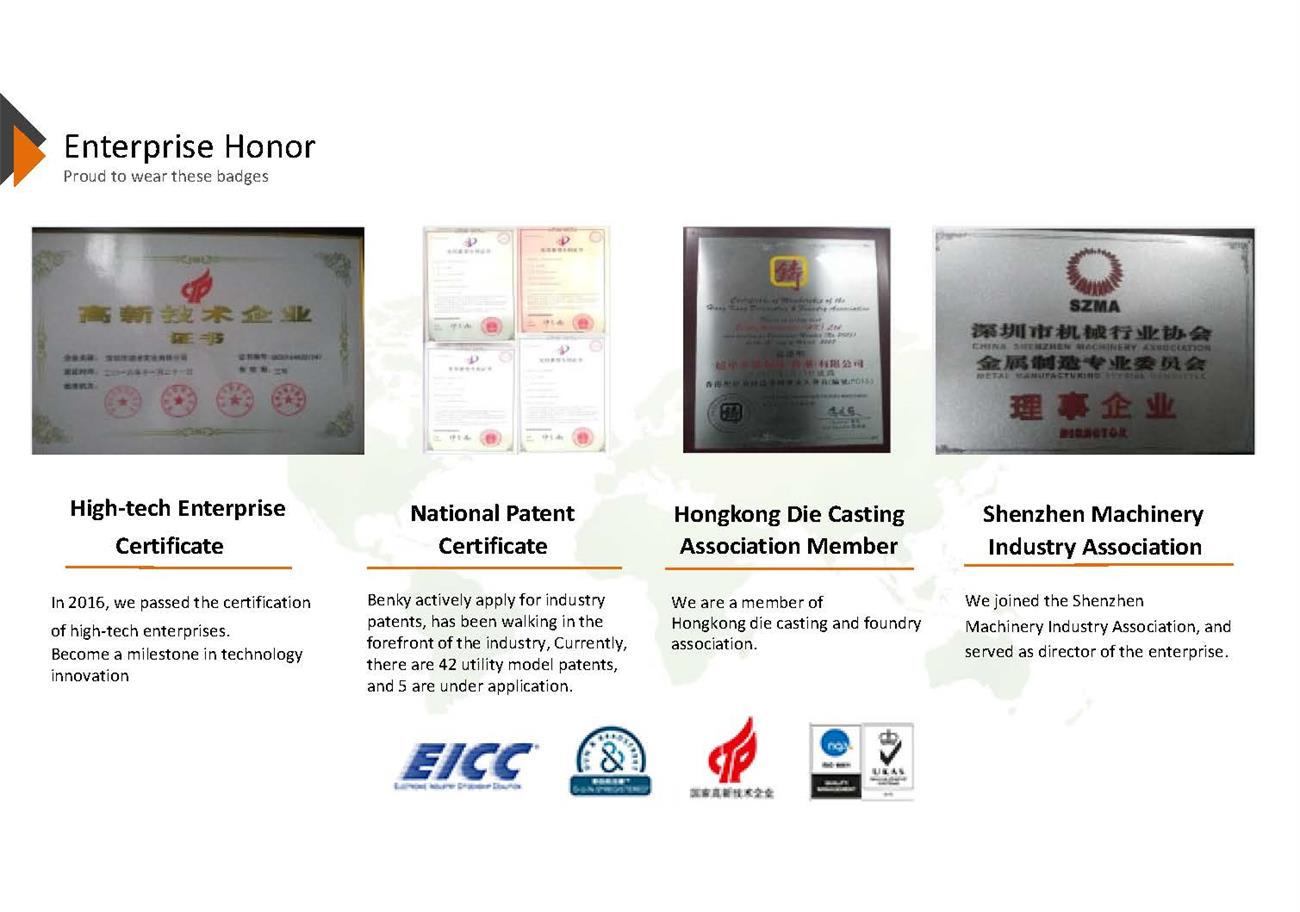 公司先后通過(guò)了ISO9001、IATF16949、RBA、鄧白氏等體系認證,以及富士康綠色合作伙伴證書(shū)。